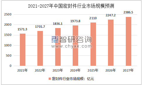 隨著下游應(yīng)用領(lǐng)域的持續(xù)穩(wěn)定增長,密封件工業(yè)主要產(chǎn)品需求將呈現(xiàn)市場規(guī)模持續(xù)增長、發(fā)展速度漸趨平緩的態(tài)勢。預(yù)計(jì)到2027年我國密封件市場規(guī)模達(dá)2386.5億元。