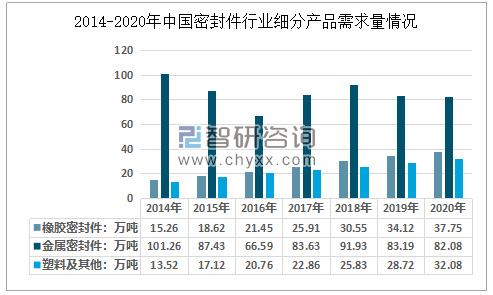 從細(xì)分需求來看,2020年我國橡膠密封件需求量37.75萬噸;金屬密封件需求量82.08萬噸;塑料及其他密封件需求量32.08萬噸。