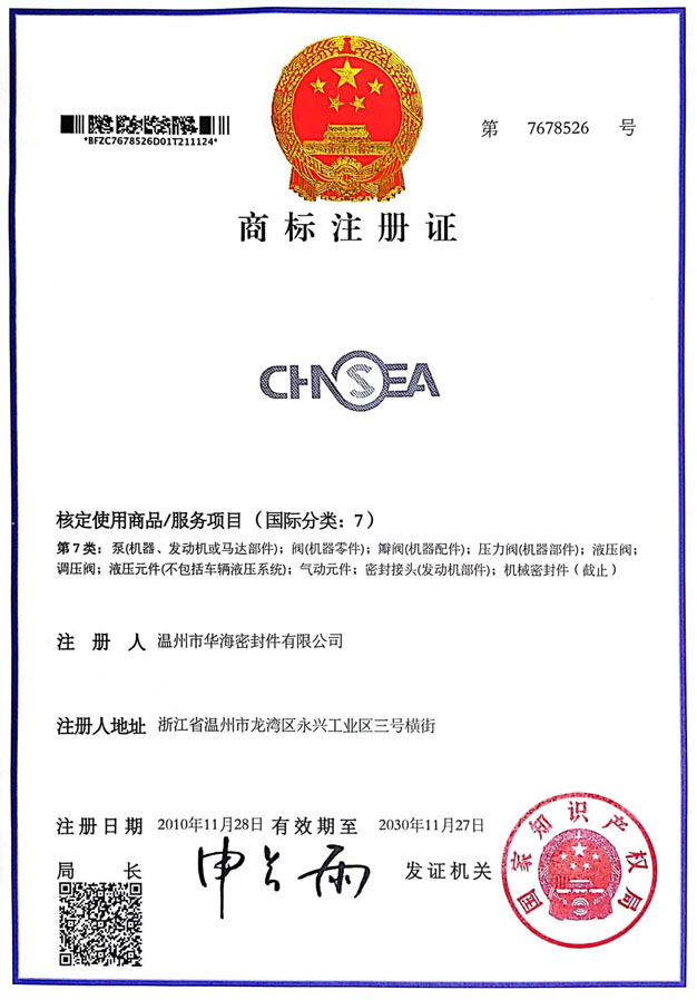 華海商標注冊證書