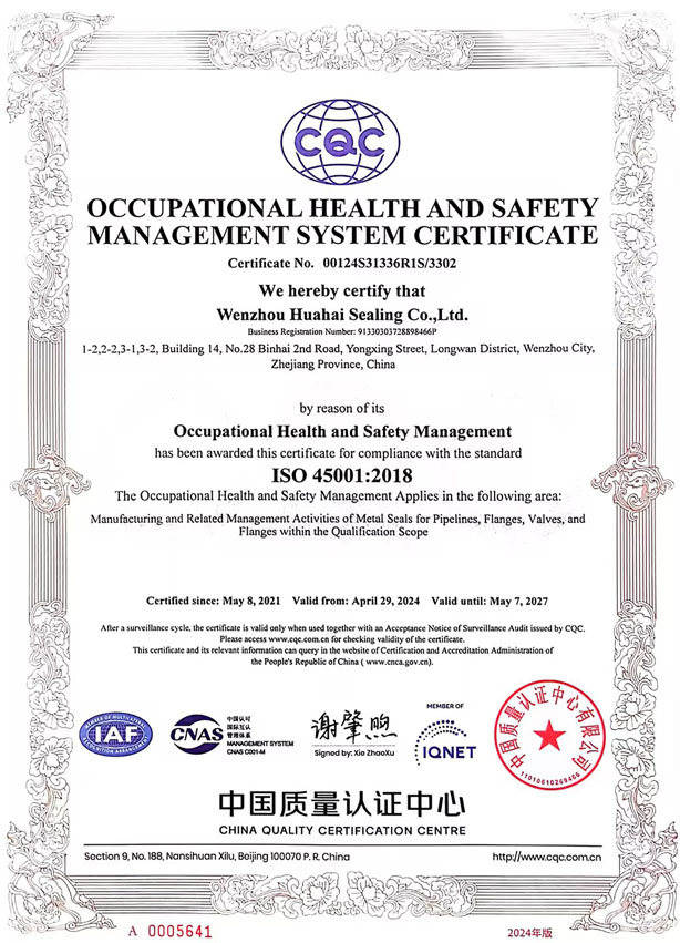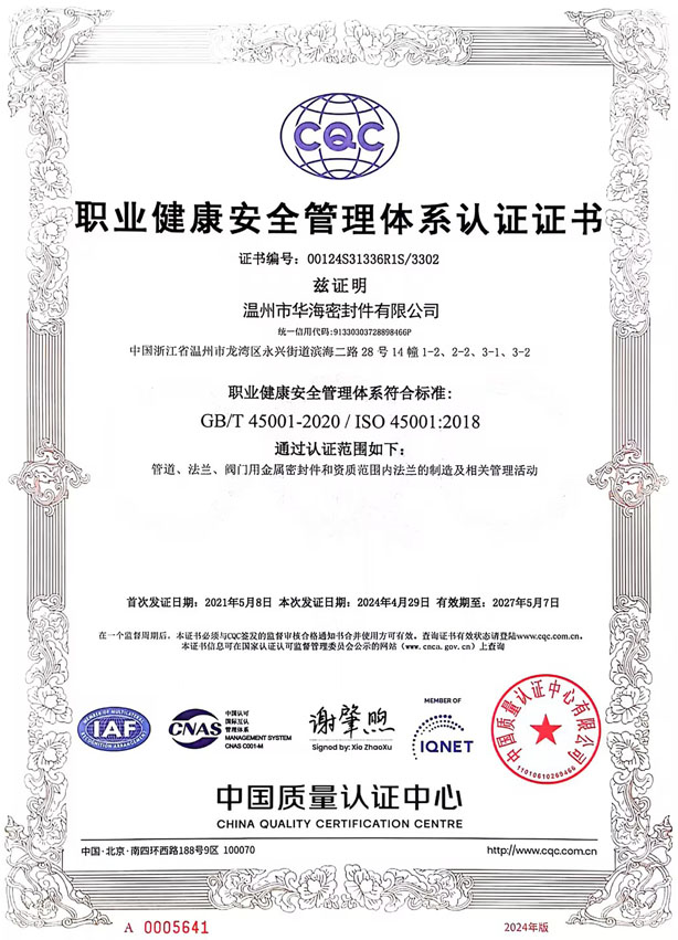 職業(yè)健康安全管理體系認證證書 職業(yè)健康安全管理體系認證證書